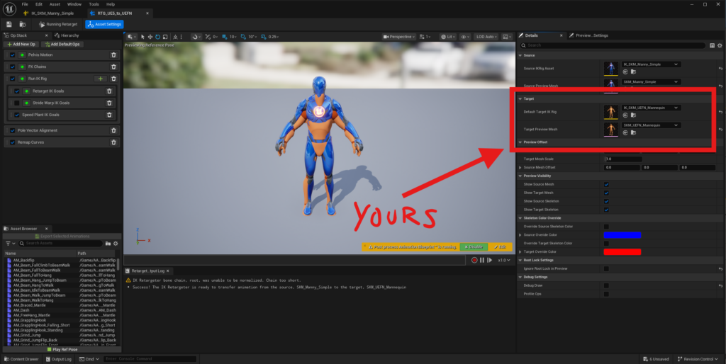 - Set your character’s Skeletal Mesh as the Target Preview Mesh