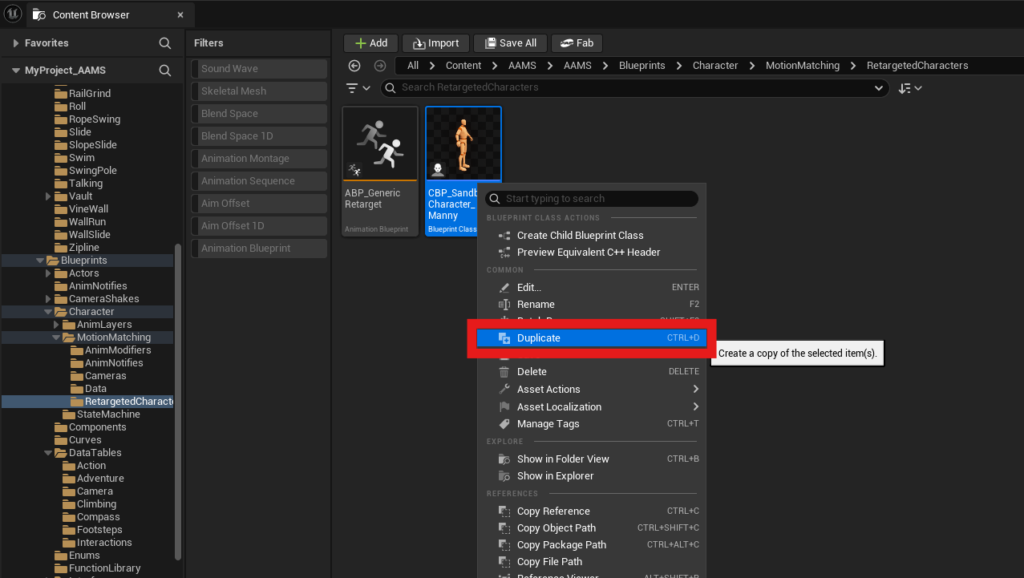 If you are reading this section, it means you are using the AAMS Motion Matching setup and want to add your own character to it, and you have already completed Steps 1 through 4.