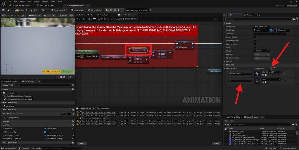 In the Event Graph, select the IKRetargeter Map variable.