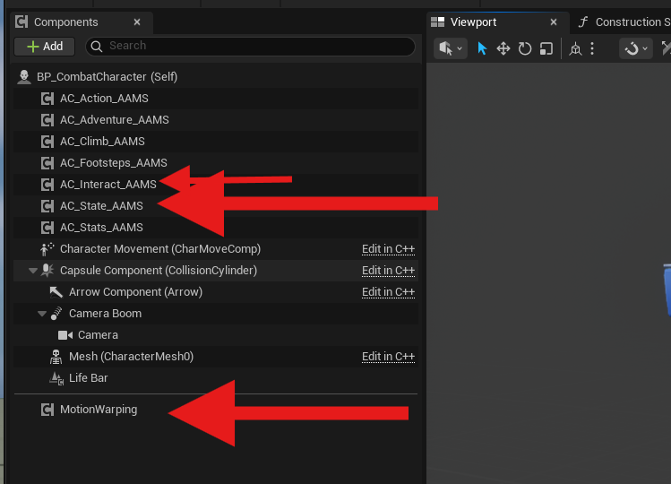 Many AAMS animations use Motion Warping to move the character from their current position to a target location during specific parts of the animation. For Motion Warping to work correctly in your own animations, those animations need to include the proper Motion Warping Anim Notifier States.