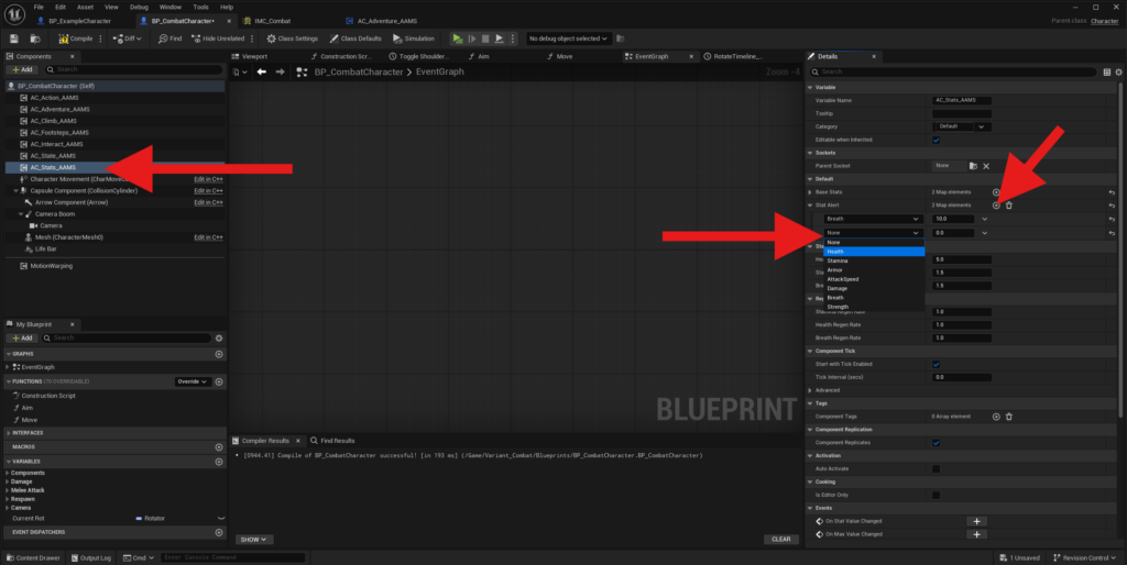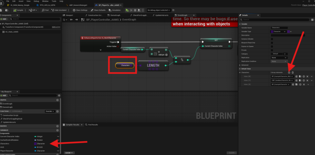 If you want your character to be included in the Next Character input system, open BP_PlayerController_AAMS and select the Character Class Array.