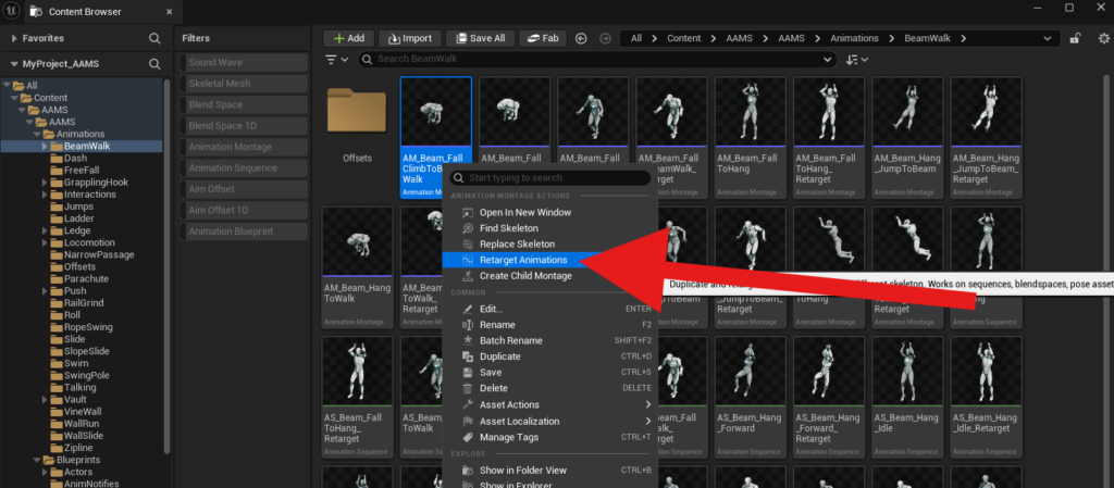 Open the RetargetedCharacters folder in AAMS: