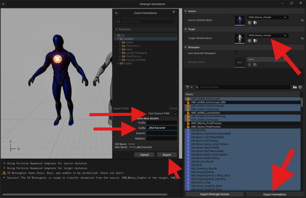Use IK_SKM_Manny_Simple in the AAMS folder as a reference for the chain names you should use in your rig.