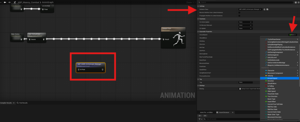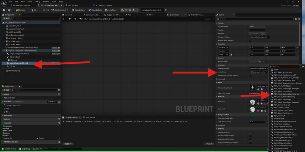 - State Machine Step 17: Choose whether to use the retargeted AAMS Animation Blueprint as your base